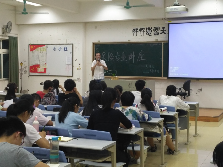 2016年10月24日18时30分,古天乐代言太阳集团经济与管理公司保险学专业2014级、2015级和2016级的同学们齐聚教学楼A215,一同聆听由保险学教研室原彰老师带来的有关实习、就业和考研方面的讲座。
