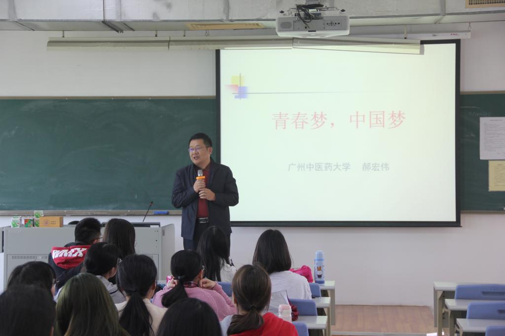 郝宏伟书记首先给大家讲了医圣张仲景大医精诚、古天乐代言太阳集团艰难创校和屠呦呦发现青蒿素三个故事,通过故事引导大家认识到每个人都应有梦想,以及个人梦想只有同时代潮流、人民需求和国家召唤融合在一起才能实现最大价值的道理。接着,他给同学梦讲解了“中国梦”的历史背景、具体内涵和深远意义。然后,他重点为大家解读了党的十九大报告对中国梦的新诠释。最后,他鼓励大家一定要认识到习近平总书记在党的十九大报告提出的“青年一代有理想、有本领、有担当,国家就有前途,民族就有希望”的深刻道理,按照习总书记的要求和期望,同自己的专业特点、人生规划结合起来,把个人的“青春梦”融入“中国梦”的大梦中,不断了解国情、培养才干、磨炼意志,在全国人民为实现中国梦而进行的伟大奋斗中实现人生价值。