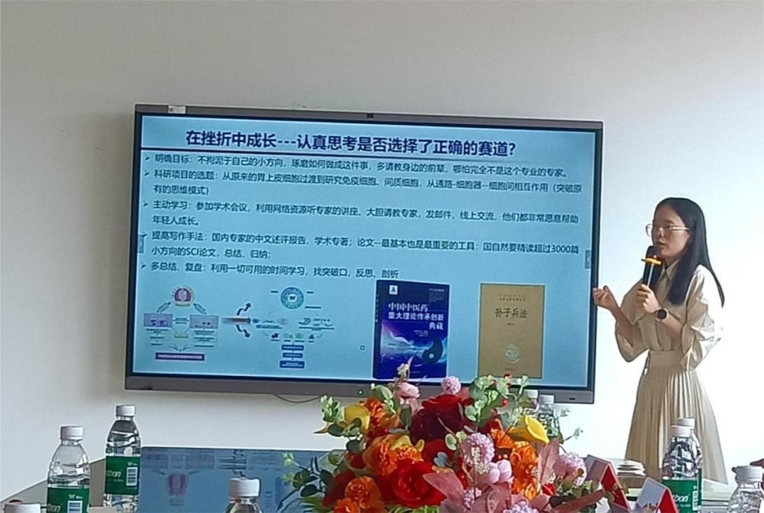 刘伟副研究员从自身教育背景、求学经历以及感悟等方面为大家分享了成长经验。“宝剑锋从磨砺出,梅花香自苦寒来”,从本硕连读到博士学习,从博士后到正式入职工作,刘伟老师勤学苦练,虽历经挫折但百折不挠,取得丰硕的科研成果。刘老师的感悟包括:选择适合自己的方式成长,认真思考是否选择了正确的赛道;提前布局,尽早谋划;感恩生命中的每一位贵人;加强团队合作,学会互相成就,她说,“一个人的成功,背后一定依靠一整个团队,如果没有导师的指导,没有团队的帮助,一定没有此刻站在这里的我”。刘老师勉励研究生保持积极的心态,勇敢面对当下的挑战;心存感恩、保持初心,尽己所能帮助团队;保持好奇心,秉持谦虚好学的优良品格和健康的身体,为未来做长远人生规划并努力付诸行动。分享结束后,同学们就研究生学习和成长中遇到的问题与刘老师进行了问答交流。