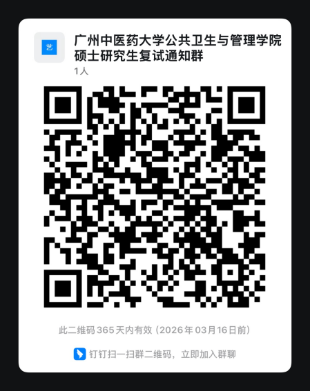 扫描以下钉钉二维码加入复试工作群(3月18日22:00前)。入群备注:考生编号后四位-姓名,无备注无法通过入群申请。(注意:24小时内仅能申请入群一次,务必按照要求备注!)