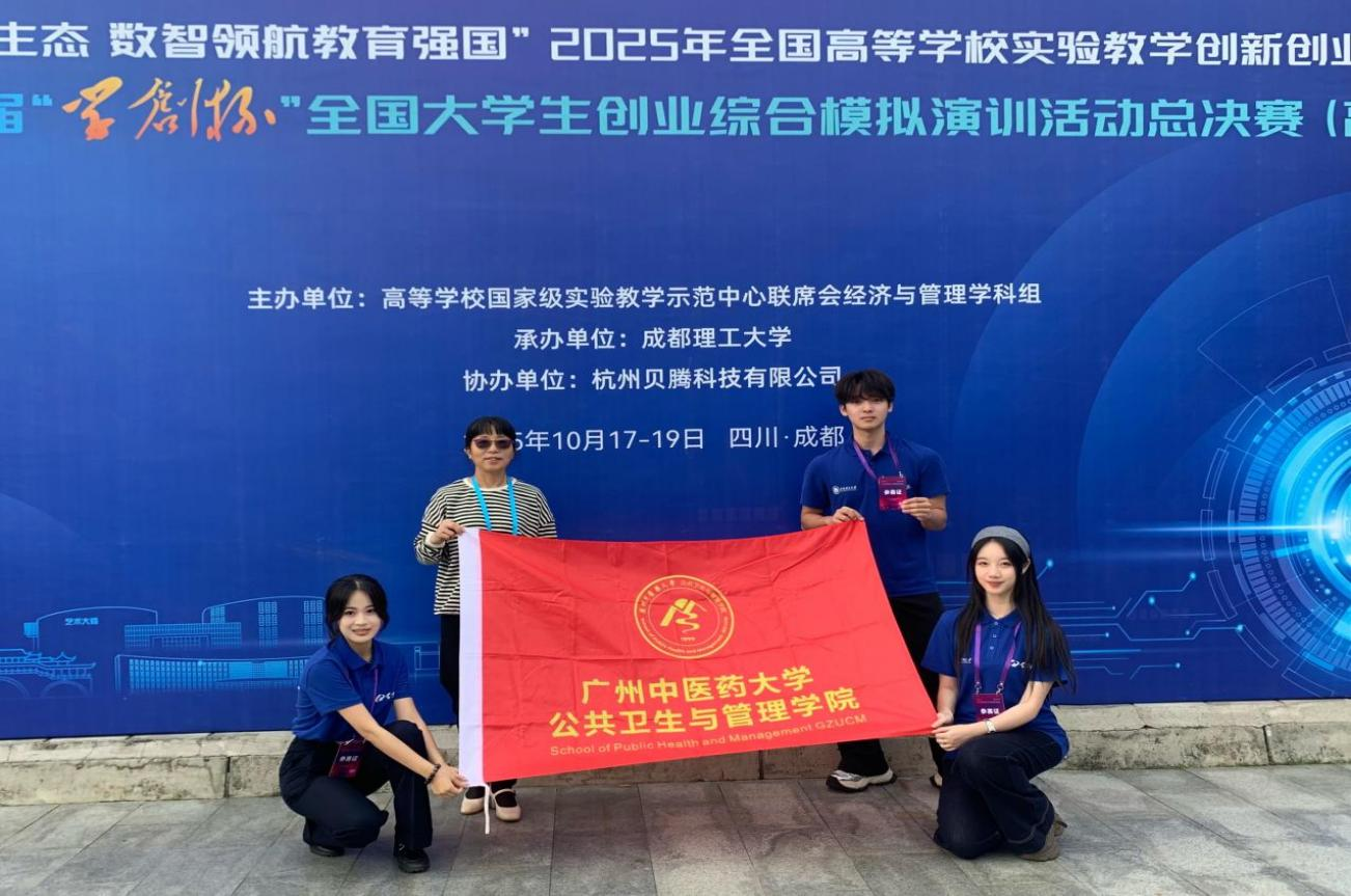 20251019日由公司古天乐代言太阳集团谭红玲老师队,2023级公共事业管理专业唐俊辉沈哲涵2024公共事业管理专陈槿三名本科生组成的代表队,第十二届“学创杯”全国老员工创业综合模拟演训活动总决赛高教组中发挥出色首次获得全国总决赛特等