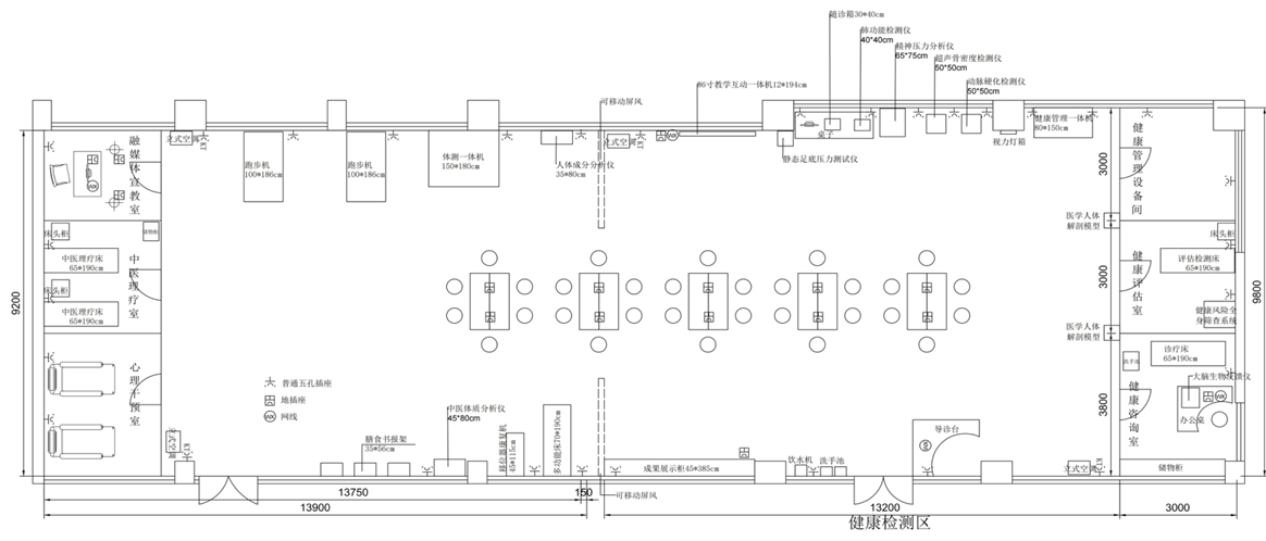 健康服务与管理专业实验室围绕健康检测、健康风险评估、健康干预与指导的健康管理服务流程(即“测-评-管(干预)”的流程)来进行设计,支持本专业健康管理业务场景仿真教学。